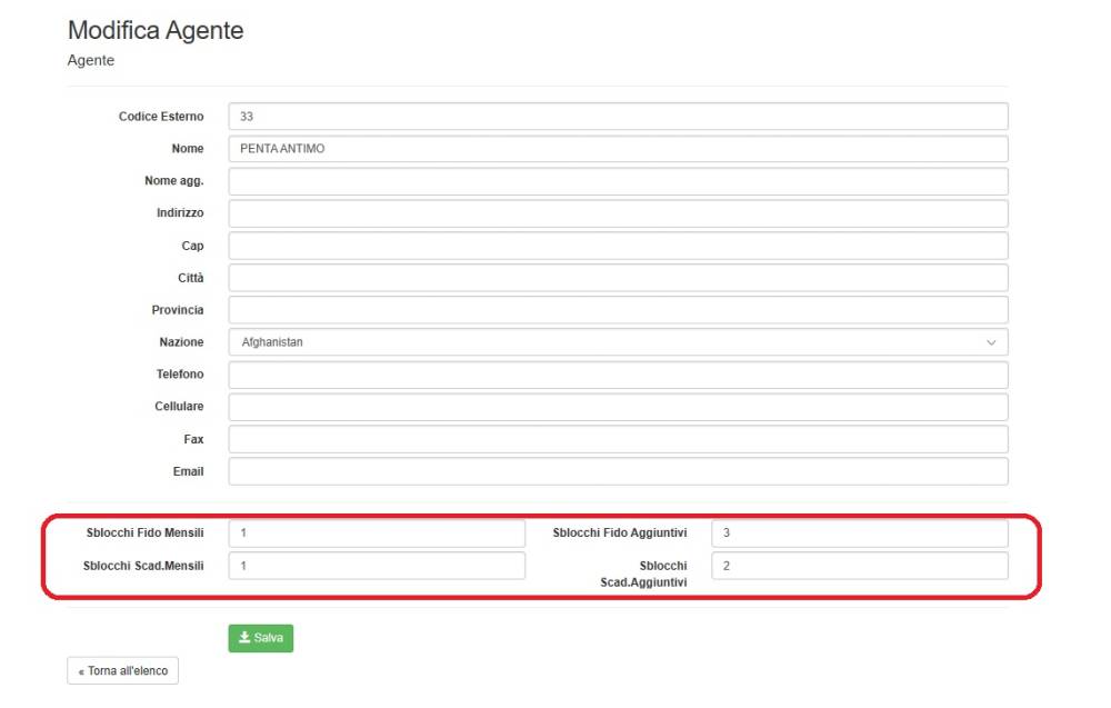 Quando tutti gli sblocchi mensili concessi saranno terminati, l’agente non potrà più sbloccare ulteriori clienti per il fido.