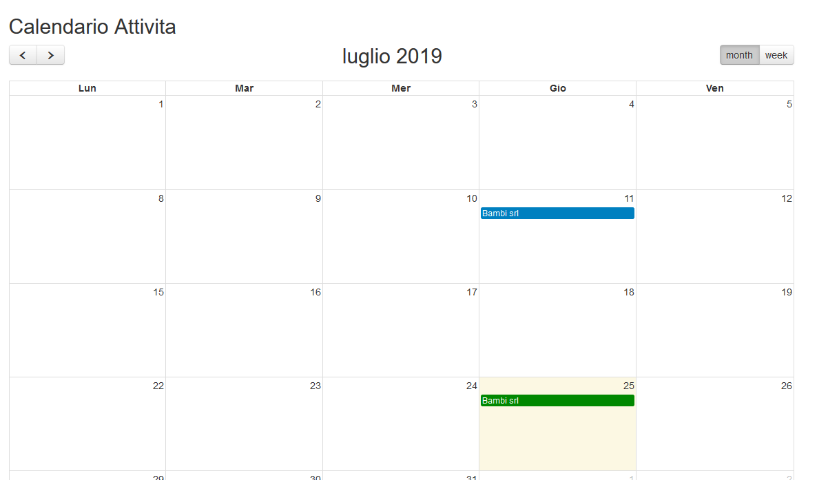 La funzione calendario permette di avere una visione d'insieme delle attività di proprio interesse.