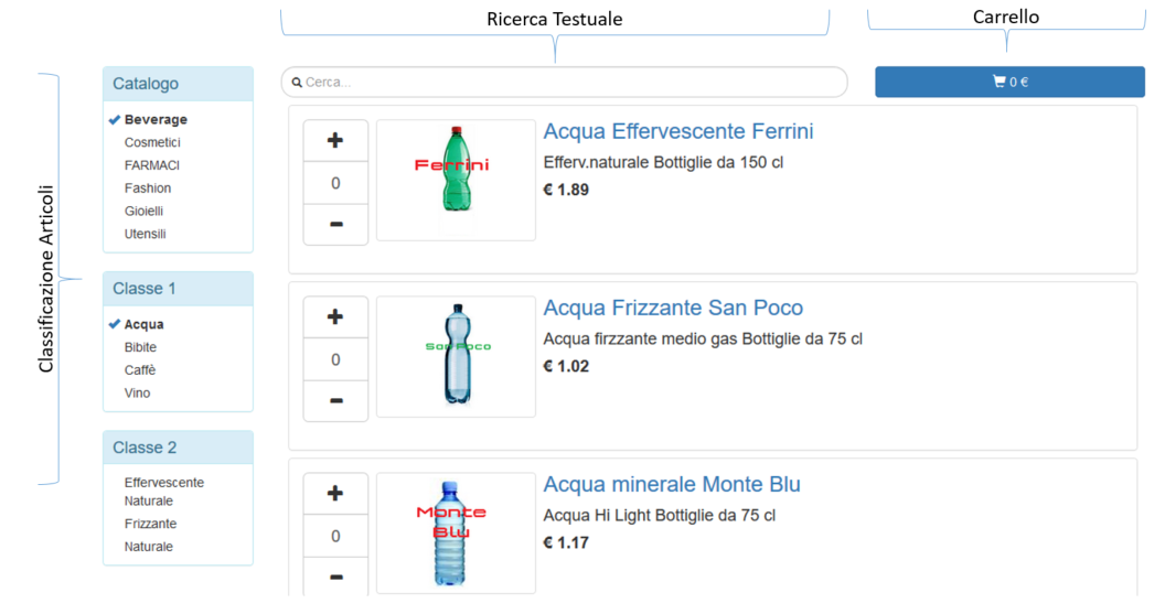 La logica di compilazione degli ordini è quella tradizionale degli ecommerce: si visualizzano i prodotti di interesse navigando tra le varie categorie e sottocategorie di prodotti oppure utilizzando la funzione di ricerca testuale; successivamente si imposta la quantità da ordinare per ogni referenza che verrà automaticamente aggiunta al “carrello”. Nella parte superiore destra della schermata viene visualizzata l'icona del carrello con il valore attuale dell'ordine in corso.