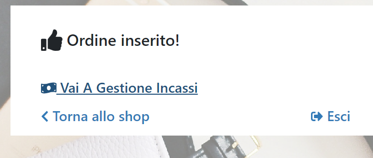 Conferma Ordine in Carrello e collegamento diretto ad Incassi