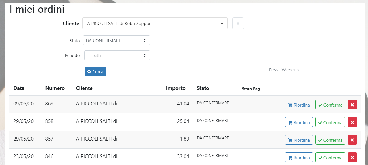 Con il nuovo pulsante Conferma & Consegna il sistema genera un ordine e ne cambia subito lo stato in “CONFERMATO”.