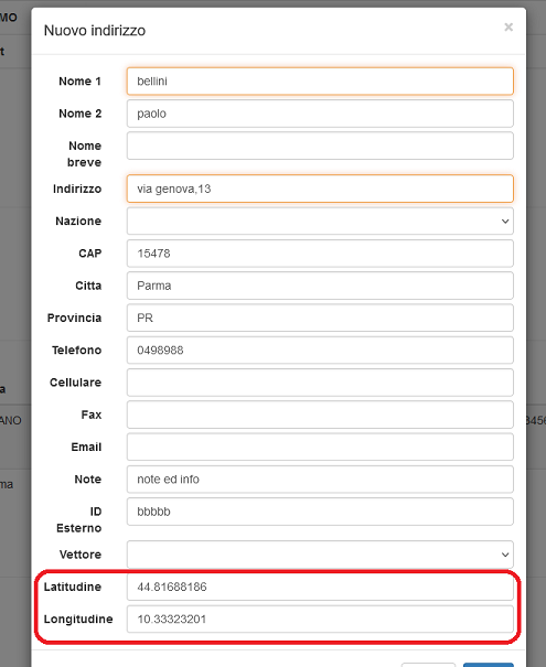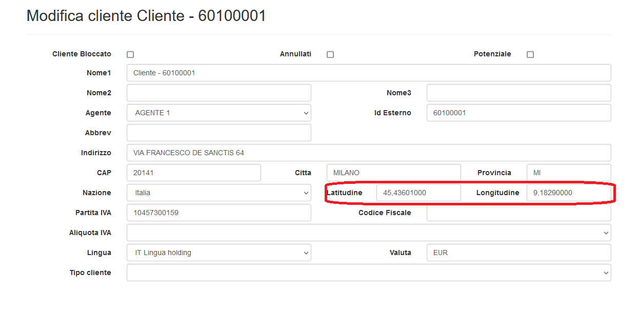 Nelle anagrafiche clienti sono presenti i campi per le coordinate terresti dell'indirizzo del cliente: