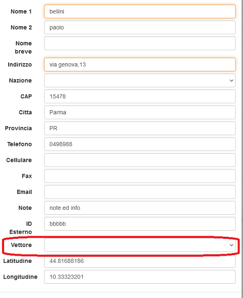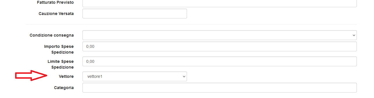 Sempre nell'anagrafica del cliente è disponibile il campo per poter indicare il Vettore predefinito per le consegne