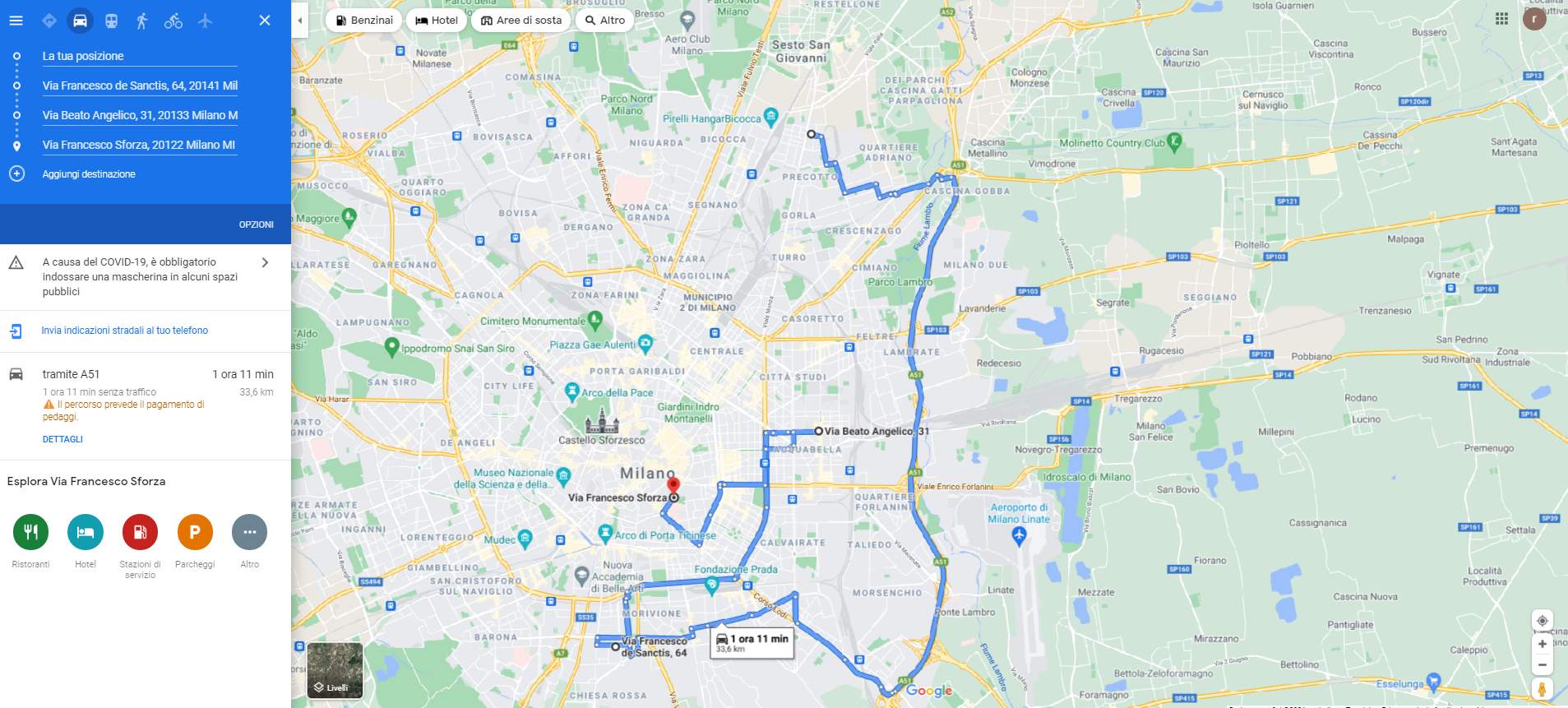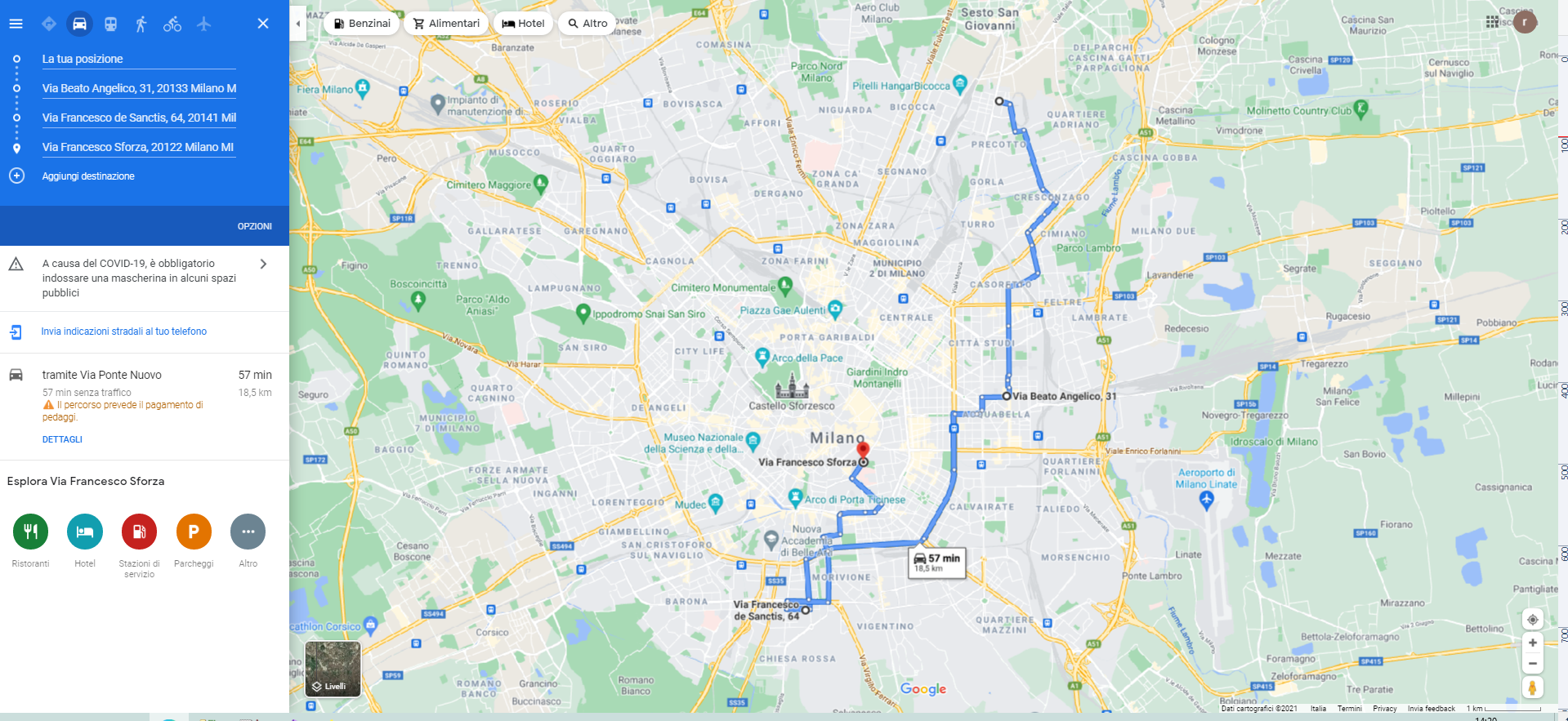 In base anche al traffico presente, si otterrà un percorso ottimizzato: