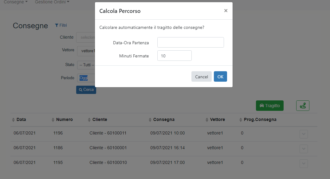 E' possibile in base alla sequenza di giorno/ora oppure di progressivo Consegna, calcolare e visualizzare il percorso del tragitto da compiere.