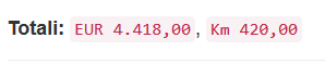 Oltre alla conferma delle singole spese potrebbe essere necessario introdurre i valori di cambio per le valute estere o per le spese relative ai rimborsi chilometrici, per farlo basta premere il relativo totale (in rosso) ed indicare il valore di cambio. Tutte le righe relative vengono aggiornate in funzione del tasso di conversione inserito.